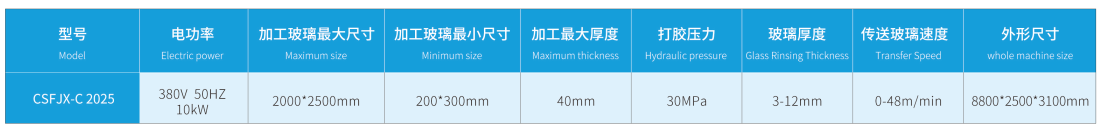人機(jī)友好界面,操作方便;邊部涂膠充實(shí)無氣泡.角部飽滿.無需人工修整;世界知名的伺服控制系統(tǒng).性能穩(wěn)定;精確的同步帶傳輸系統(tǒng),確保玻璃運(yùn)行平穩(wěn)無污染;獨(dú)特的膠量自動(dòng)報(bào)警裝置